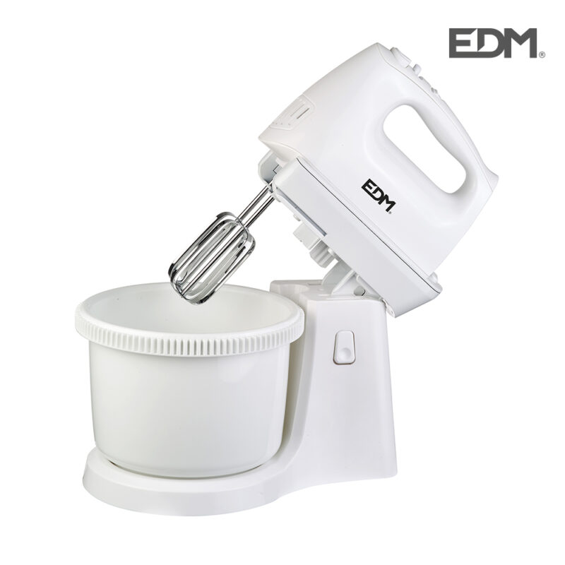 AMASADORA CON BOL – POTENCIA: 400W – 5 NIVELES DE POTENCIA – MANGO ERGONOMICO – 2 JUEGOS DE VARILLAS CROMADAS DE 16,3CM – DIMENSIONES: 20X29X36CM – 220/240V – 50HZ – EDM