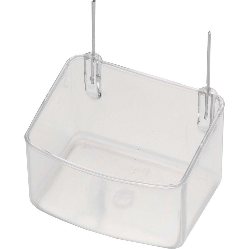 Comedero para Loros Alambre. Comedero interior fabricado con material resistente de primera calidad, es ideal para agapornis, ninfas, cotorras o loros. Para colgar en cualquier tipo de jaula, sus ganchos de alambre moldeables, permiten ajustarlo a la jaula.