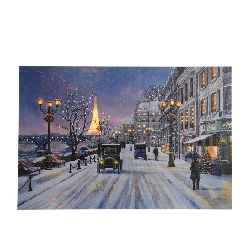 CUADRO CON LED ESCENA PARIS CON BOTON ON/OFF 2,3X38X58CM LUZ CALIDA. FUNCIONA CON 3XAA PILAS NO INCLUIDAS.