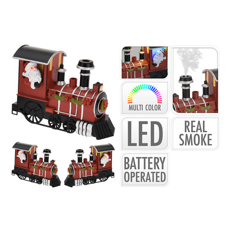 ESCENA NAVIDEÑA TREN CON HUMO REAL 19X,7,5X12,5CM CON 4 LUCES LED MULTICOLOR Y HUMOO 3V/15MA 3XAA NO INCLUIDAS