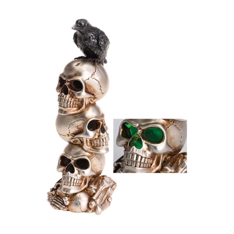 FIGURA CALAVERA Y CUERVO HALLOWEEN 31CM CON LUZ A PILAS