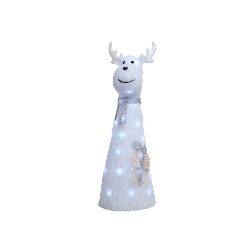 FIGURA RENO ACRILICO CON BUFANDA. EXTERIOR IP44 BOMBILLAS NO REEMPLAZABLES. 18X18X51CM -40L.