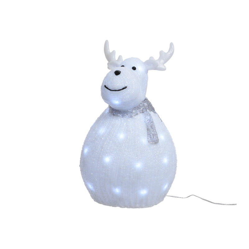 FIGURA RENO ACRILICO CON BUFANDA. EXTERIOR IP44 BOMBILLAS NO REEMPLAZABLES. 21X24X37CM -40L.