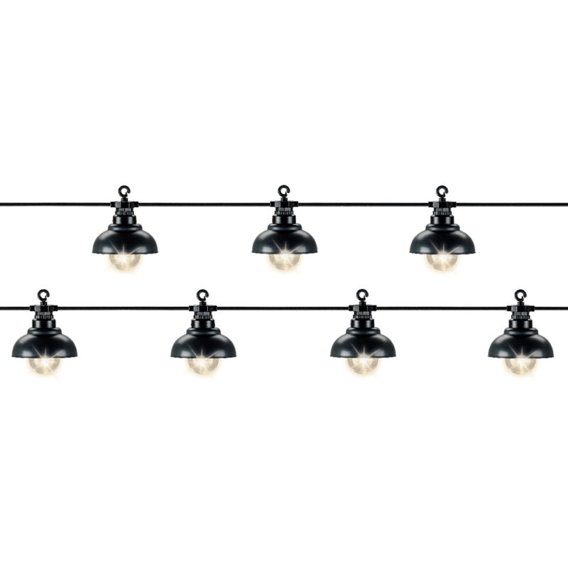 GUIRNALDA 10 LEDS 450CM IP44 220V. GUIRNALDA ESTILO PUERTO MARINO, 5MTS CABLE HASTA EL PRIMER LED, DISTANCIA ENTRE BOMBILLAS 50CM, SE PUEDEN INTERCONECTAR HASTA UN MAXIMO DE 10 SETS. COLOR LED CALIDO 3.200K COLOR CABLE NEGRO