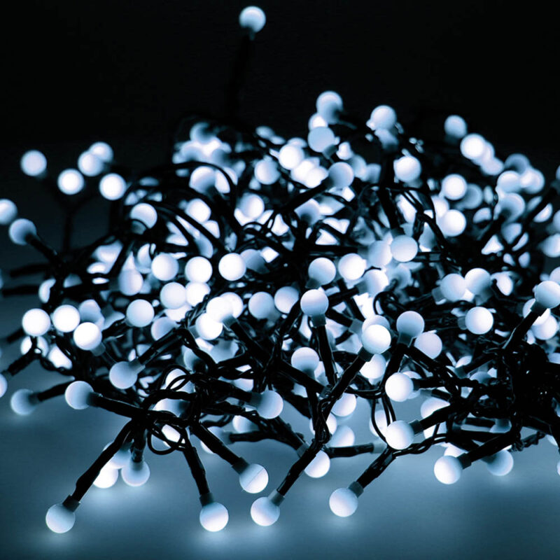 GUIRNALDA “CHERRY COMPACT” PARPADEANTE EXTERIOR 1100CM 500LED LUZ FRIA 8 F MEMORY CONTROLLER. CABLE NEGRO. IP44 TRANSF. CABLE ALIMENTACION 3M. DISTANCIA ENTRE LA PRIMERA Y LA ULTIMA BOMBILLAS: 11M LARGO TOTAL:14M BOMBILLAS NO REEMPLAZABLES
