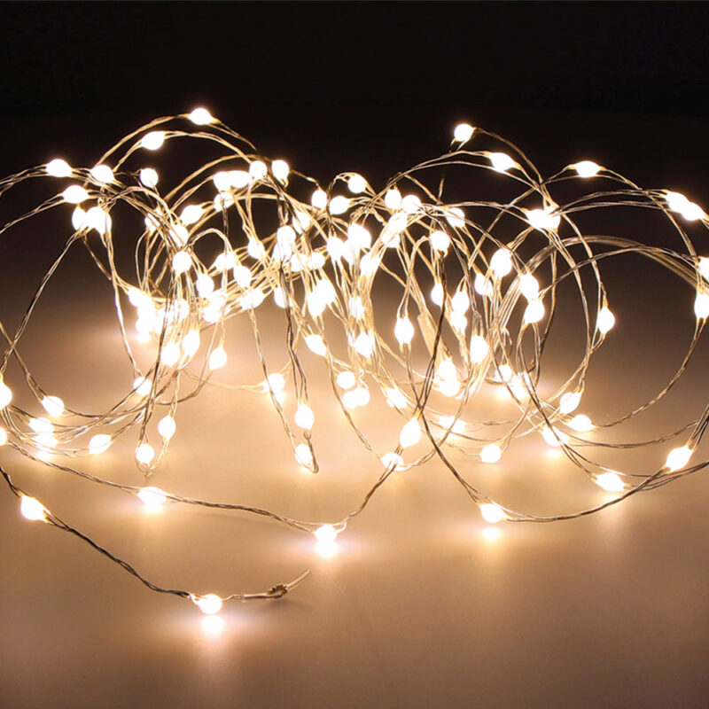 GUIRNALDA MICRO LED GRANDE EXTERIOR 6M BLANCO CALIDO. PARPADENATE, CABLE PLATA, 8 FUNCIONES. IP44 600CM 120L