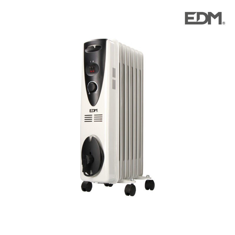 RADIADOR DE ACEITE – (7 ELEMENTOS) – POTENCIA: 1500W – CON TERMOSTATO Y PROTECCION CONTRA SOBRECALENTAMIENTO – FUNCIONAMIENTO SILENCIOSO – FACIL MANEJO MEDIANTE BOTONES – DIMENSIONES: 37X73X16,5CM – 220/240V – (PACKING 1 UNIDAD) – EDM